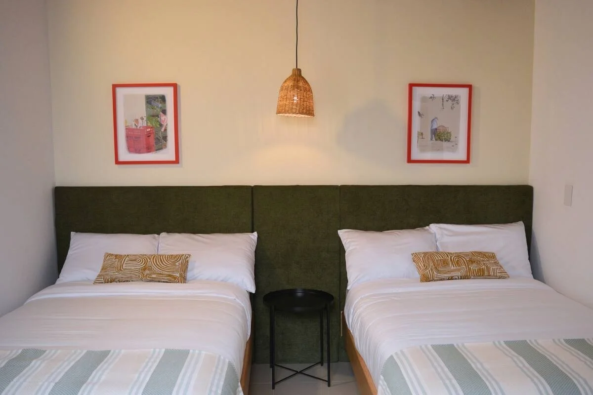 This shared two-bed room is our budget-friendly option. Whether you want to save money and rent one bed and get to meet a fellow co-liver, or splitting the room with a friend to explore Medellín together, it’s a great way to connect and make the most of your stay. Located on the first floor near all the main common areas, the room features a spacious layout and a massive walk-in closet.