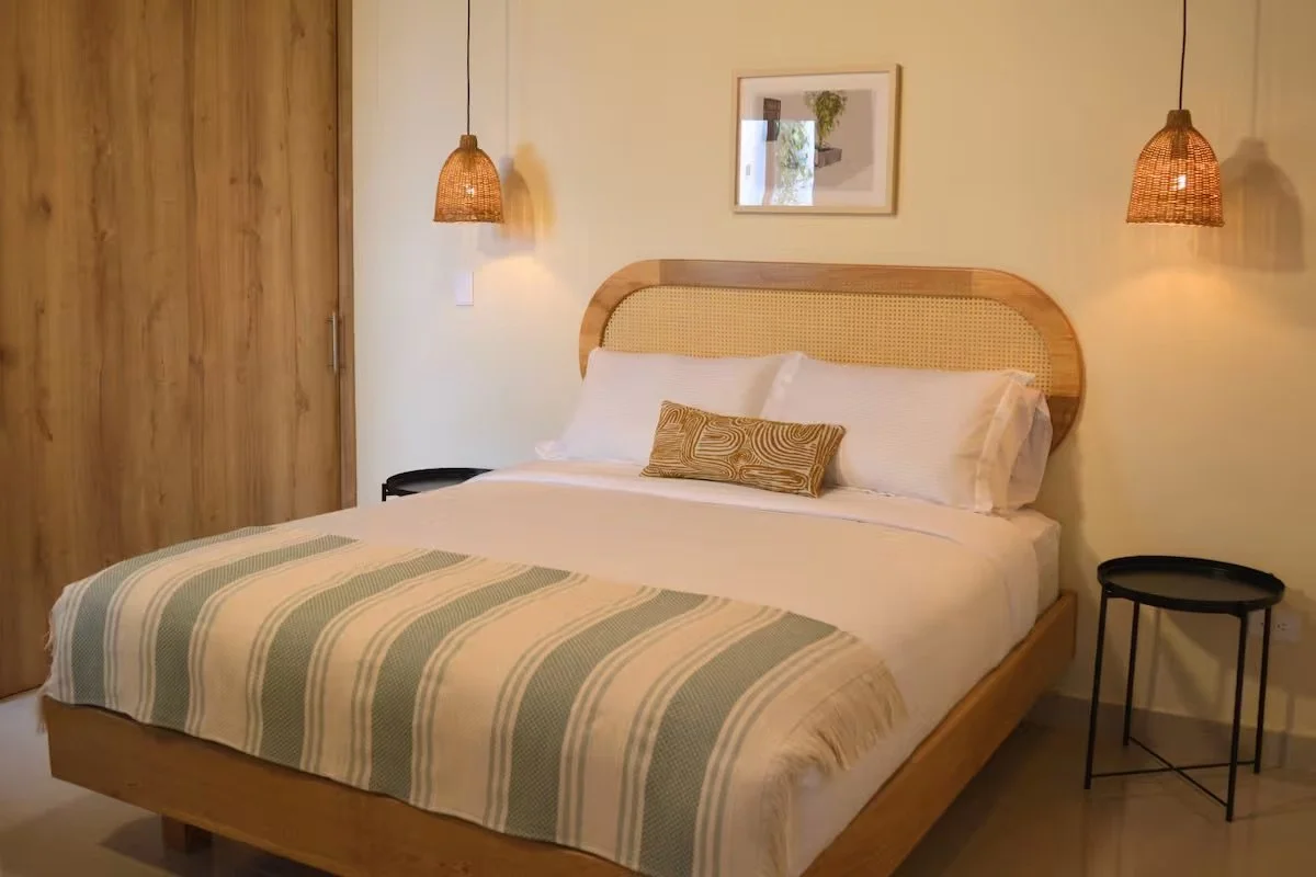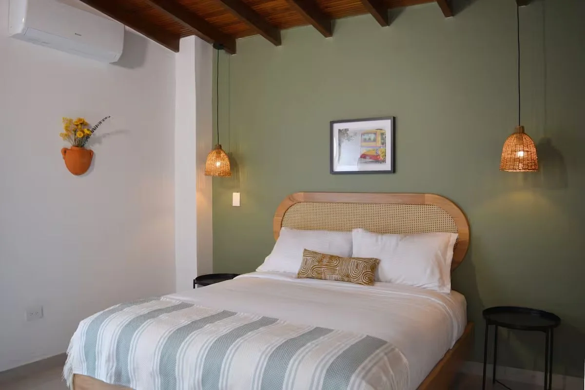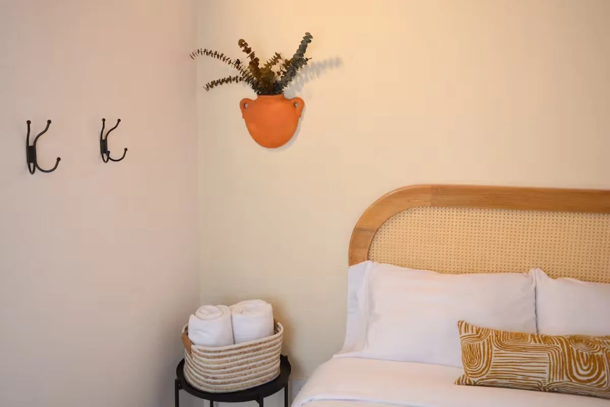 Located on the first floor near the coworking space, this bright and cheerful room offers both comfort and convenience. Furnished with a queen-size bed, it features vibrant decor and plenty of natural light. Added perks of a private bathroom and direct access to a relaxing outdoor patio.